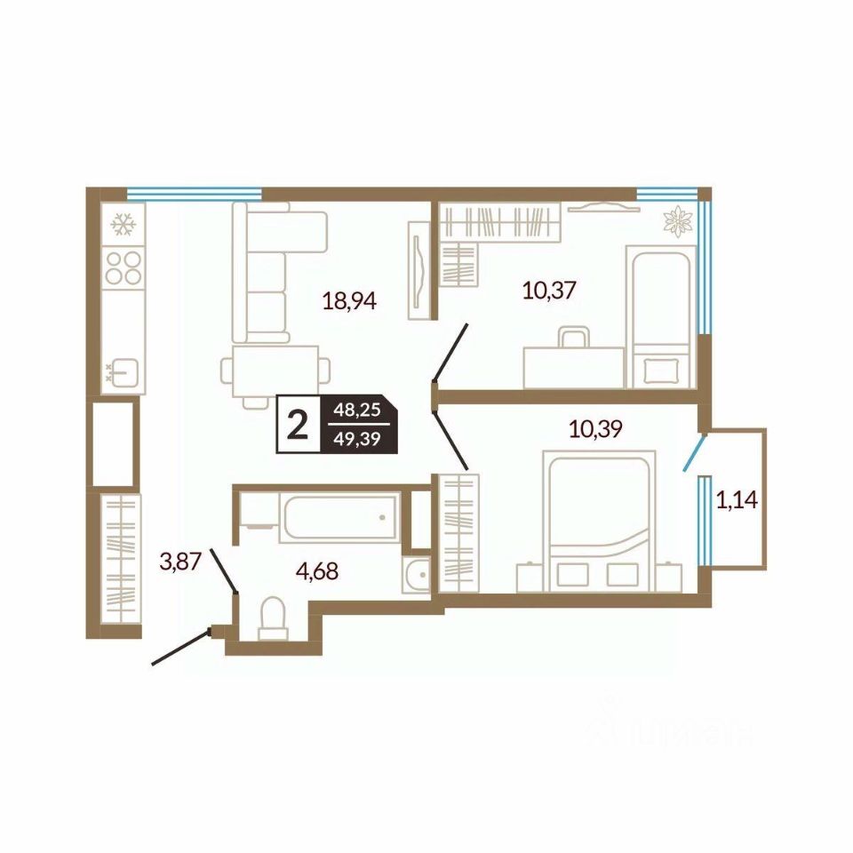 Общая площадь49,39 м²