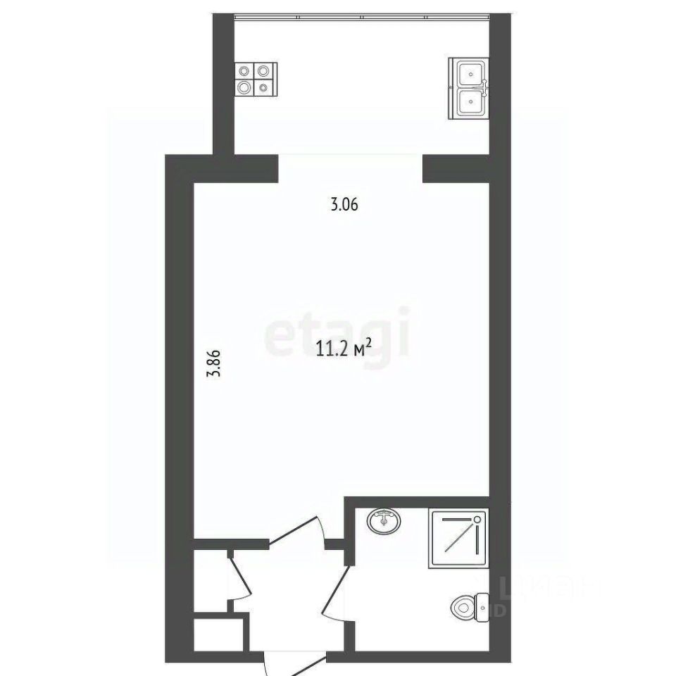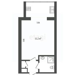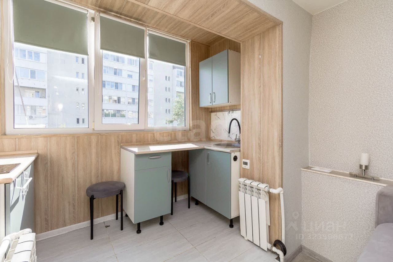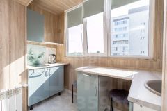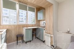 Общая площадь 14.8 м². На лоджии оборудована зона кухни.