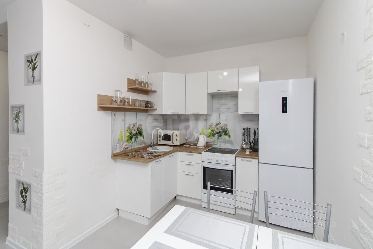 Квартира выполнена в современном стиле с качественным ремонтом. На стенах — стильные обои под покраску, а матовые натяжные потолки придают помещению элегантность. В прихожей и кухне вас встретит керамическая плитка, а в спальне и гостиной — прочный ламинат 32 класса. Санузел оформлен в кафеле и оборудован всем необходимым: раковиной, унитазом и ванной, а также предусмотрена точка подключения для стиральной машины.