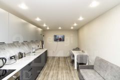 В самой квартире выполнен свежий ремонт: выровнены стены, оклеены качественными обоями, заменены межкомнатные двери, балкон застеклен, установлены пластиковые окна. Кухонный гарнитур совершенно новый. Санузел раздельный. При продаже останется мебель и техника. Заезжай и живи. Планировка: кухня-гостиная 17 м2, комната 5,6м2, комната 14м2.