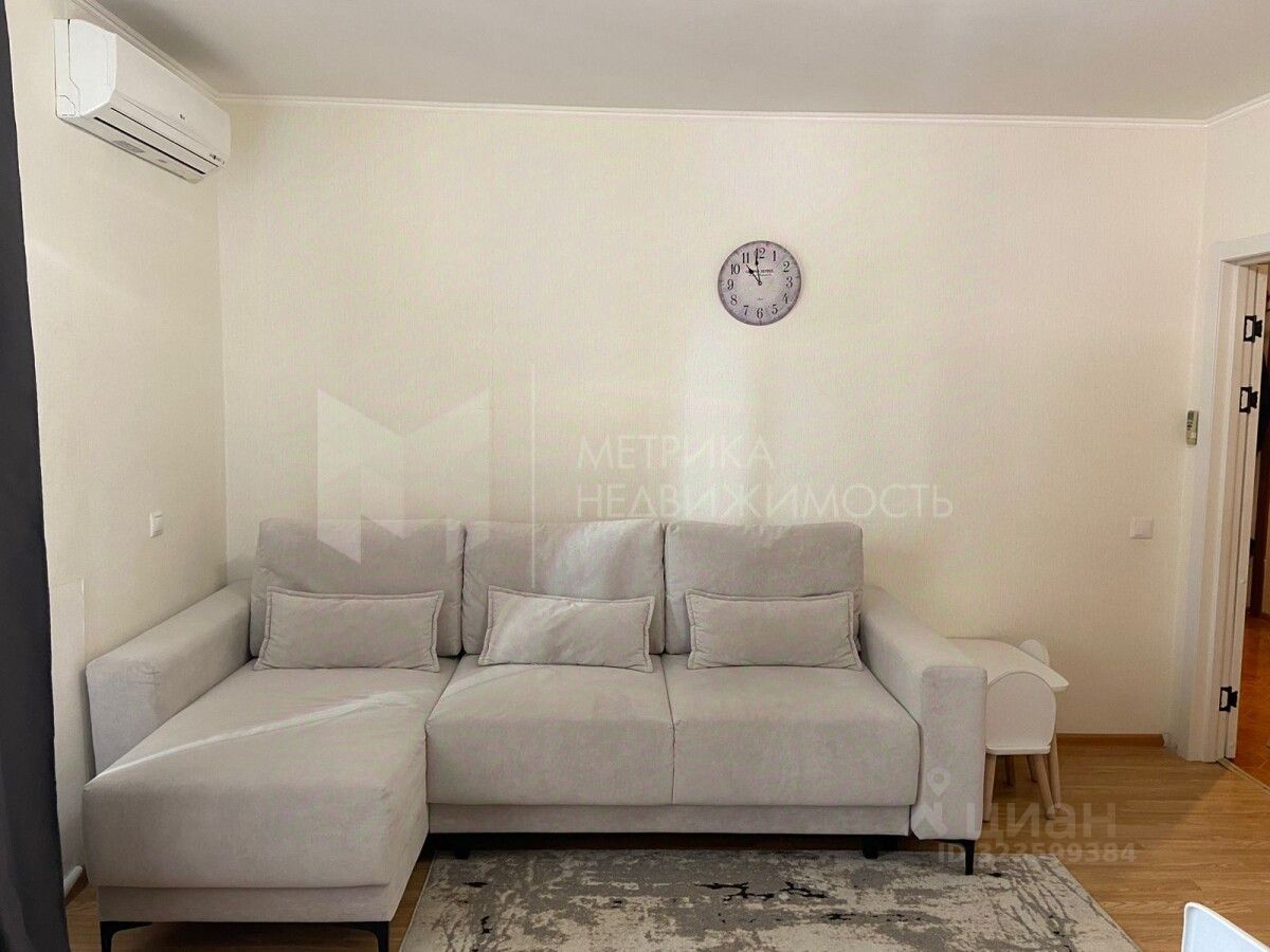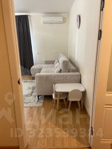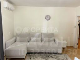 B квартире евроремонт, с использованием современных технологий из качественных материалов. На полу в комнате и кухне качественный ламинат. Пол возле кухонного гарнитура и в коридоре выложен плиткой. Потолок выровнен и покрашен. На стенах в кухне наклеены обои, в комнате стены выравнены и покрашены. Санузел в кафеле и с теплым полом. Балкон застеклен. На балконе встроенный шкаф для хранения. Кухня разделена условно на две зоны: кухня-столовая с барной стойкой и зона отдыха с мягким диваном. Установлены межкомнатные двери.