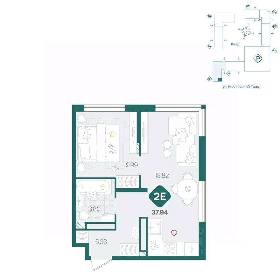 Однокомнатная квартира с большой кухней-гостиной, уютной спальней и вместительной ванной комнатой. В прихожей ниша под шкаф. Предусмотрено угловое остекление.