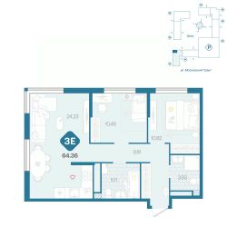 Двухкомнатная квартира с большой кухней-гостиной и угловым остеклением. Предусмотрено два просторных санузла. В прихожей ниша под встроенный шкаф. Окна выходят на две стороны.