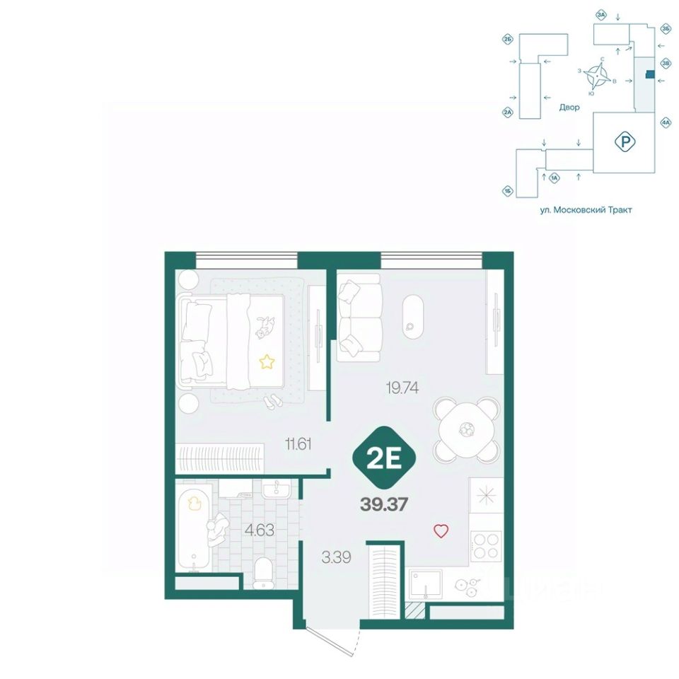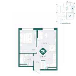 Двухкомнатная квартира форматас отдельной спальней и большой кухней-гостиной. В прихожей предусмотрена ниша для вместительного шкафа, в санузле поместятся стиральная и сушильная машина. Кухня-гостиная зонирована на нишу для приготовления, обеденную зону и гостевую.