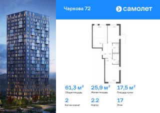 Строим кварталы для жизни с заботой о будущем. Предлагается 2-комнатная квартира комфорт-класса 61,34 кв.м в корпусе 2.2 на 17 этаже, в ЖК "Чаркова 72"