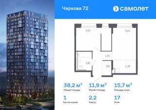Строим кварталы для жизни с заботой о будущем. Предлагается 1-комнатная квартира комфорт-класса 38,18 кв.м в корпусе 2.2 на 17 этаже, в ЖК "Чаркова 72"