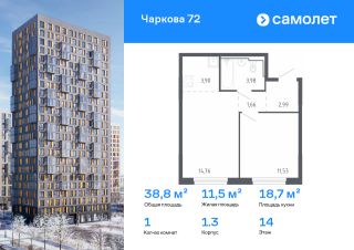 Строим кварталы для жизни с заботой о будущем. Предлагается 1-комнатная квартира комфорт-класса 38,82 кв.м в корпусе 1.3 на 14 этаже, в ЖК "Чаркова 72"