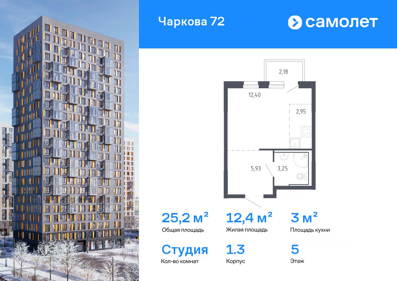 Строим кварталы для жизни с заботой о будущем. Предлагается квартира студия комфорт-класса 25,18 кв.м в корпусе 1.3 на 5 этаже, в ЖК "Чаркова 72"