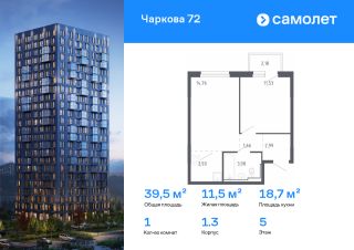 Строим кварталы для жизни с заботой о будущем. Предлагается 1-комнатная квартира комфорт-класса 39,47 кв.м в корпусе 1.3 на 5 этаже, в ЖК "Чаркова 72"