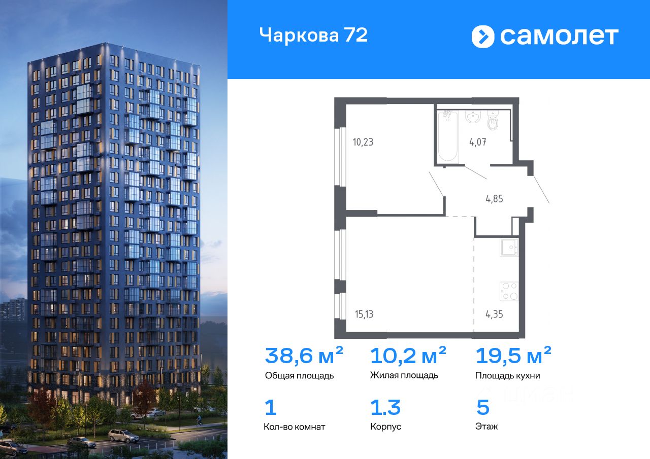 Строим кварталы для жизни с заботой о будущем. Предлагается 1-комнатная квартира комфорт-класса 38,63 кв.м в корпусе 1.3 на 5 этаже, в ЖК "Чаркова 72"