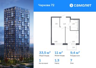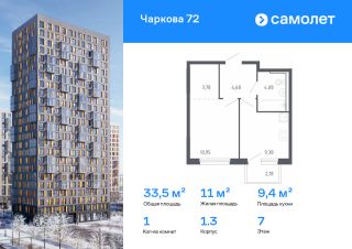 Строим кварталы для жизни с заботой о будущем. Предлагается 1-комнатная квартира комфорт-класса 33,52 кв.м в корпусе 1.3 на 7 этаже, в ЖК "Чаркова 72"