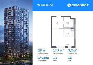 Строим кварталы для жизни с заботой о будущем. Предлагается квартира студия комфорт-класса 29 кв.м в корпусе 1.1 на 16 этаже, в ЖК "Чаркова 72"
