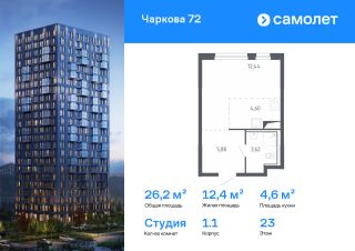 Строим кварталы для жизни с заботой о будущем. Предлагается квартира студия комфорт-класса 26,2 кв.м в корпусе 1.1 на 23 этаже, в ЖК "Чаркова 72"