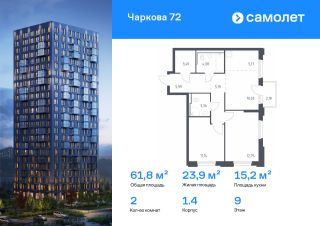 Строим кварталы для жизни с заботой о будущем. Предлагается 2-комнатная квартира комфорт-класса 61,82 кв.м в корпусе 1.4 на 9 этаже, в ЖК "Чаркова 72"