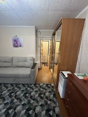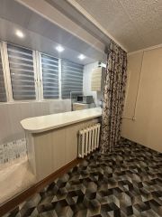 Выполнен аккуратный косметический ремонт. Кухонная зона вынесена на утеплённую лоджию. Натяжной потолок, увеличенная батарея отопления, корпусная мебель: стенка, диван, кухонный гарнитур с ящиками, вмонтированными в подоконник - всё создаёт комфорт при кратковременном или длительном проживании.