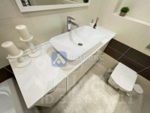 В квартире выполнен современный ремонт под ключ с использованием дорогих материалов. Дизайн квартиры дополняет мебель (кухонный гарнитур со столешницей и фартуком из искусственного камня, шкафы-трансформеры, диван, кровать) и бытовая техника (холодильник Hansa, духовой шкаф с СВЧ Samsung, варочная поверхность Lex, кондиционер Bally, телевизор Samsung ) сочетающаяся с продуманной планировкой и стилем. Идеальным пространством для семейных вечеров и встреч с друзьями станет кухня-гостиная площадью 21,4 кв. м. с декоративным камином.