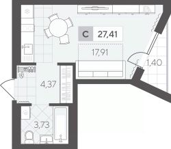 Студия 27.41 кв.м на 6 этаже — удобное решение для динамичной жизни. Основная комната в квартире многофункциональна и легко трансформируется в гостиную, спальню или столовую.