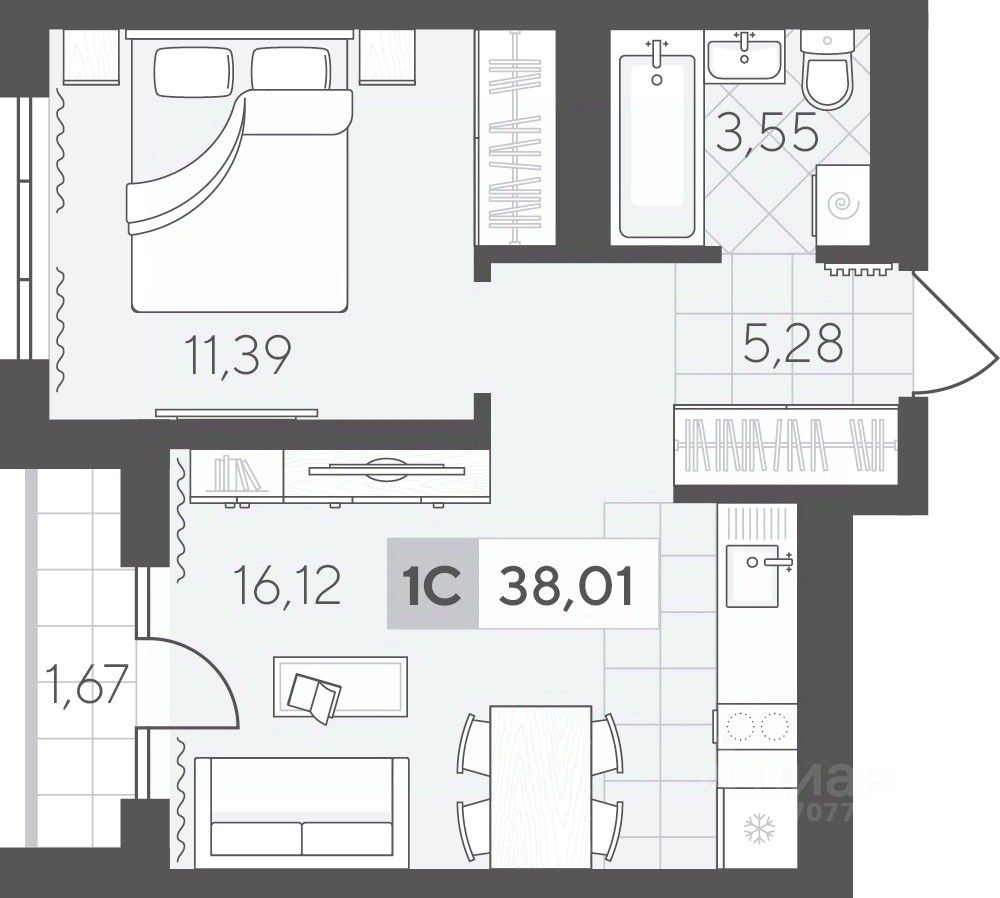 Однокомнатная квартира 38.01 кв.м на 4 этаже с планировкой, сочетающей комфорт и функциональность. Здесь легко создать атмосферу уюта и спокойствия, а кухня-гостиная позволит проводить много времени за совместными занятиями или принимать гостей.