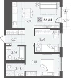Квартира с двумя спальнями площадью 56.64 кв.м на 8 этаже. Продуманная геометрия комнат позволит легко зонировать пространство для личного досуга и места, где удобно проводить время с семьей или встречать гостей.