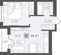 Однокомнатная квартира 38.01 кв.м на 8 этаже с планировкой, сочетающей комфорт и функциональность. Здесь легко создать атмосферу уюта и спокойствия, а кухня-гостиная позволит проводить много времени за совместными занятиями или принимать гостей.