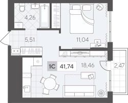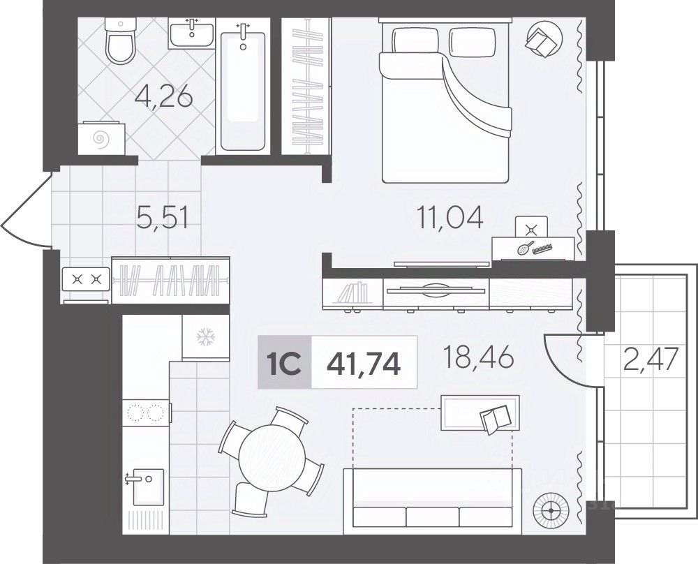 Однокомнатная квартира 41.74 кв.м на 8 этаже с просторной кухней-гостиной. Здесь легко создать уютное пространство для встреч, а отдельная спальня обеспечивает комфорт и личное пространство..