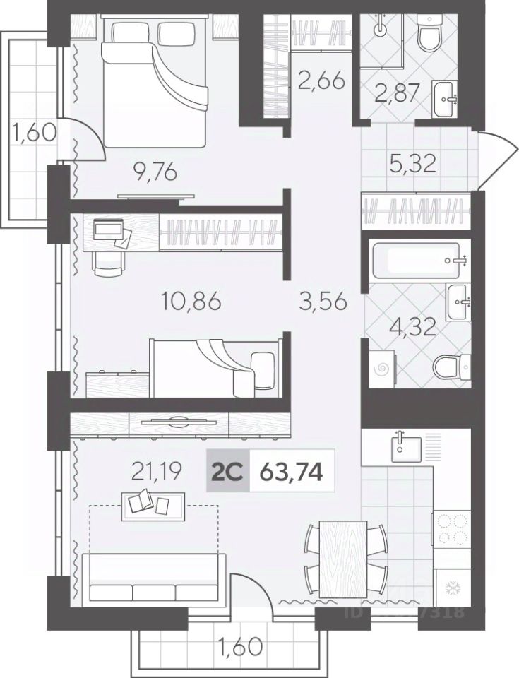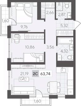 Двухкомнатная квартира 63.74 кв.м на 9 этаже — идеальный вариант для молодой семьи или пары. Просторная кухня-гостиная станет местом семейных встреч, а две спальни обеспечат удобство и приватность для каждого.