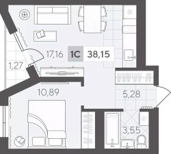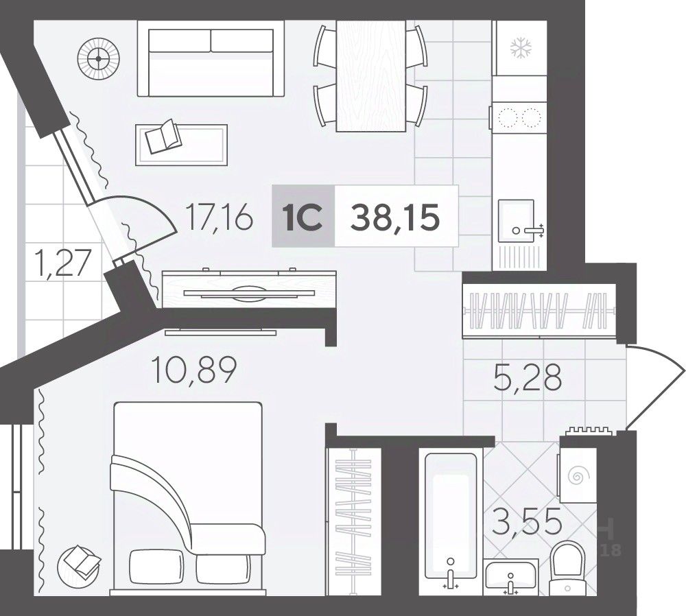 Однокомнатная квартира 38.15 кв.м на 12 этаже с просторной кухней-гостиной. Здесь легко создать уютное пространство для встреч, а отдельная спальня обеспечивает комфорт и личное пространство..