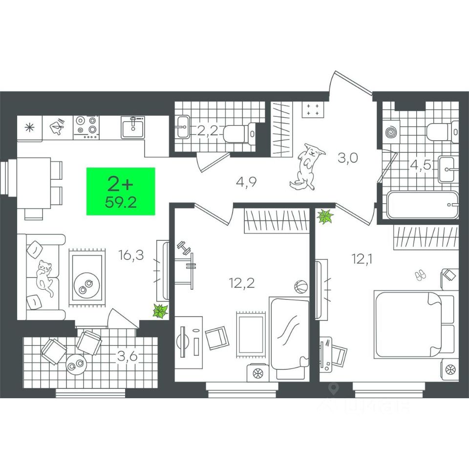 Продаётся 2-комнатная квартира в строящемся доме (Д5.2 (Малкова, 5)), срок сдачи: III-кв. 2026, общей площадью 59.22 кв.м., на 10 этаже. Компания 4D приступила к строительству нового жилого комплекса "Гранд квартал". Новый ЖК находится в зеленой зоне Калининского района, южнее микрорайона Тюменская слобода.