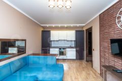 В квартире сделан хороший ремонт. На стенах обои, на полу линолеум высокого класса, в санузле стены покрашены.