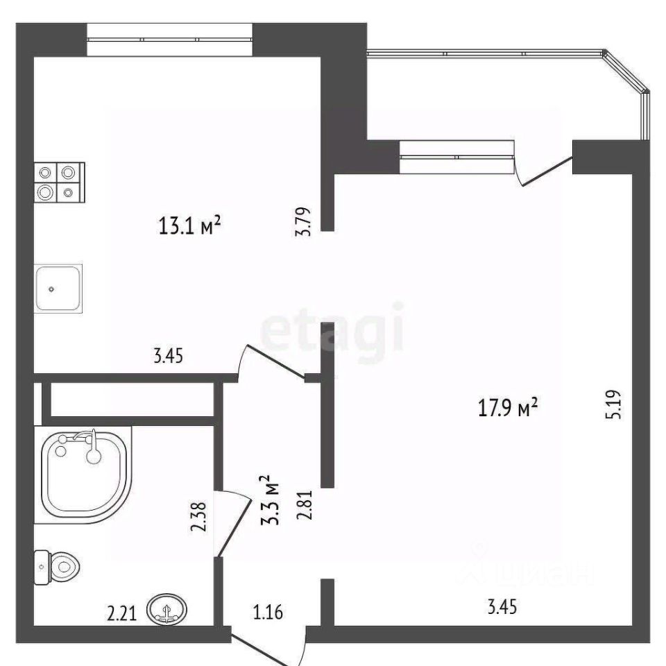 Кухня правильной формы (13,1 м²) оборудована всем необходимым для комфортного приготовления пищи. Застекленный балкон — отличное место для утреннего кофе или вечерних посиделок.