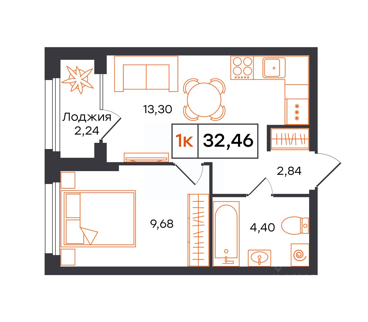 Продаётся 1-комнатная квартира в строящемся доме (Корпус 4Б (Полевая, д. 117, корпус 13)), срок сдачи: IV-кв. 2026, общей площадью 32.46 кв.м., на 7 этаже. Новый жилой комплекс "Фатера" от Специализированного застройщика "Рубин" расположен по адресу: г. Тюмень, по ул. Полевая.