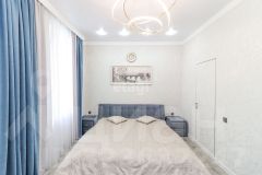 Продается просторная квартира формата 2+ в жилом комплексе House Club с общей площадью 85,5 кв. м. Высота потолков 3,1 м создает ощущение простора, а продуманная планировка включает большую кухню-гостиную (25 кв. м), мастер-спальню (16 кв. м), вторую спальню (17 кв. м), ванную комнату (7 кв. м) и прихожую с гардеробной. В квартире выполнен качественный дизайнерский ремонт: стены отделаны рельефной декоративной штукатуркой, в ванной уложен керамогранит, натяжные потолки с точечной подсветкой дополняют интерьер. Напольное покрытие — керамогранит под мрамор, что обеспечивает долговечность и эстетику.