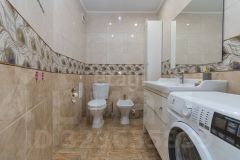 Большие окна наполняют помещение светом и открывают великолепный вид на окрестности. Установленный кондиционер обеспечит прохладу в жаркие дни. Кухонный гарнитур достаточно просторный, чтобы несколько человек могли готовить одновременно, а вся встроенная техника, включая духовой шкаф, микроволновую печь, плиту, посудомоечную машину Bosch и холодильник Samsung, остается новым владельцам. Дополнительно в квартире установлена система очистки воды.