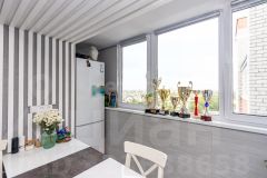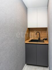 Входная группа, санузел и кухонная зона оформлены качественной кафельной плиткой, а в спальне теплый ламинат. Потолки с натяжными покрытиями и точечными светильниками создают атмосферу уюта и стиля. Уникальная зонированная планировка кухни позволяет вам удобно разделять зоны мойки и приготовления пищи, а стол, установленный в нише между кухней и лоджией, визуально расширяет пространство благодаря зеркальной стене и деревянным элементам.