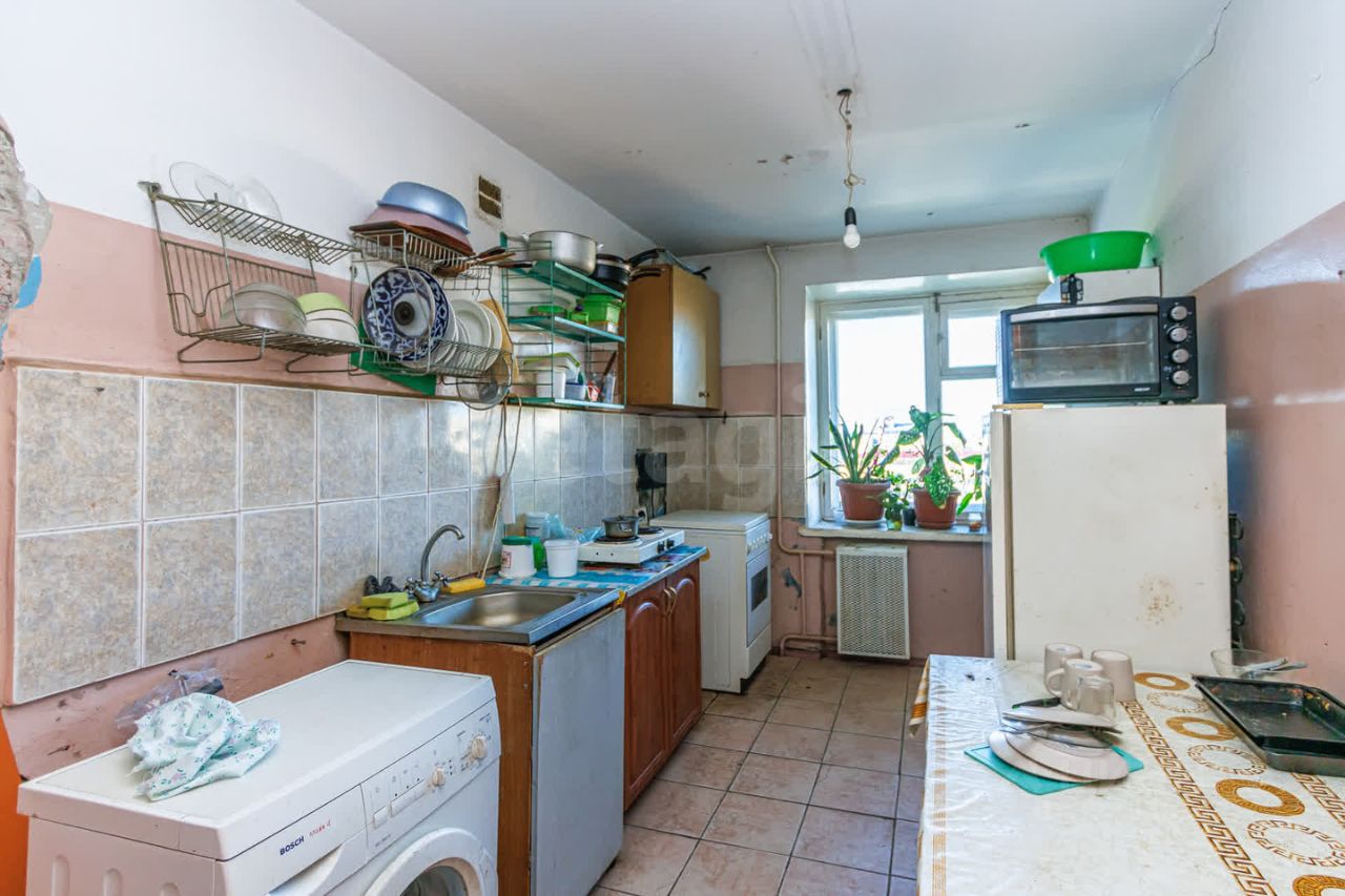 В комнате косметический ремонт, на стенах светлые обои, блок чистый. Блок на четыре комнаты. Санузел и ванная на две комнаты, расположенные в одном блоке. Кухня - общая на две комнаты. Двери от кухни, тамбура, а также от блока, закрываются на ключ. Вода в комнату не заведена, с/узел на 2 комнаты. Есть техническая возможность провести в комнату воду, подключить стиральную машинку, установить в комнате раковину, душевую кабину и унитаз. Комната без балкона.