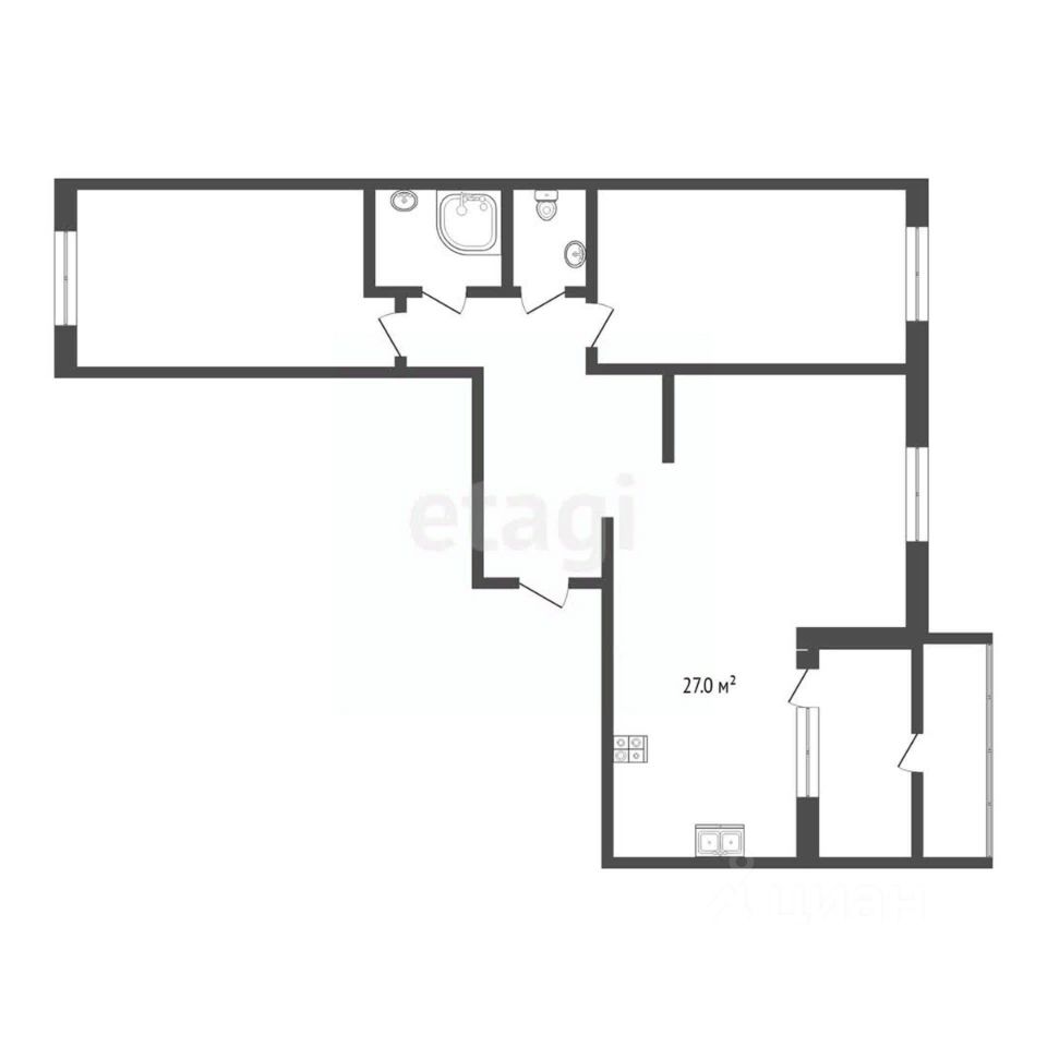 Современная планировка: кухня, примыкающая к гостиной(общая площадь 27 кв.м), две спальни, лоджия с красивым видом на улицу (панорамное остекление) . Квартира-распашонка, окна на две стороны, светло весь день - и утром, и после обеда. В квартире два санузла. В одном установлены ванна, умывальник и унитаз. Во втором оборудован унитаз и умывальник. В квартире сделан хороший косметический ремонт.