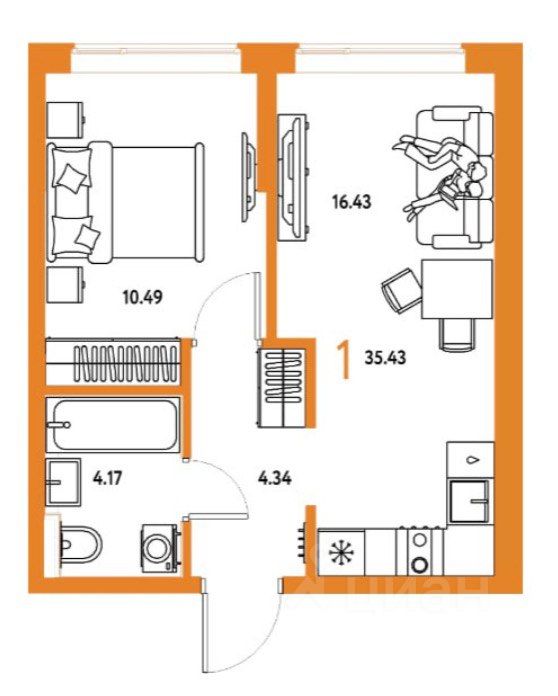 Продается 1-комнатная квартира в строящемся ЖК Остров-сад!