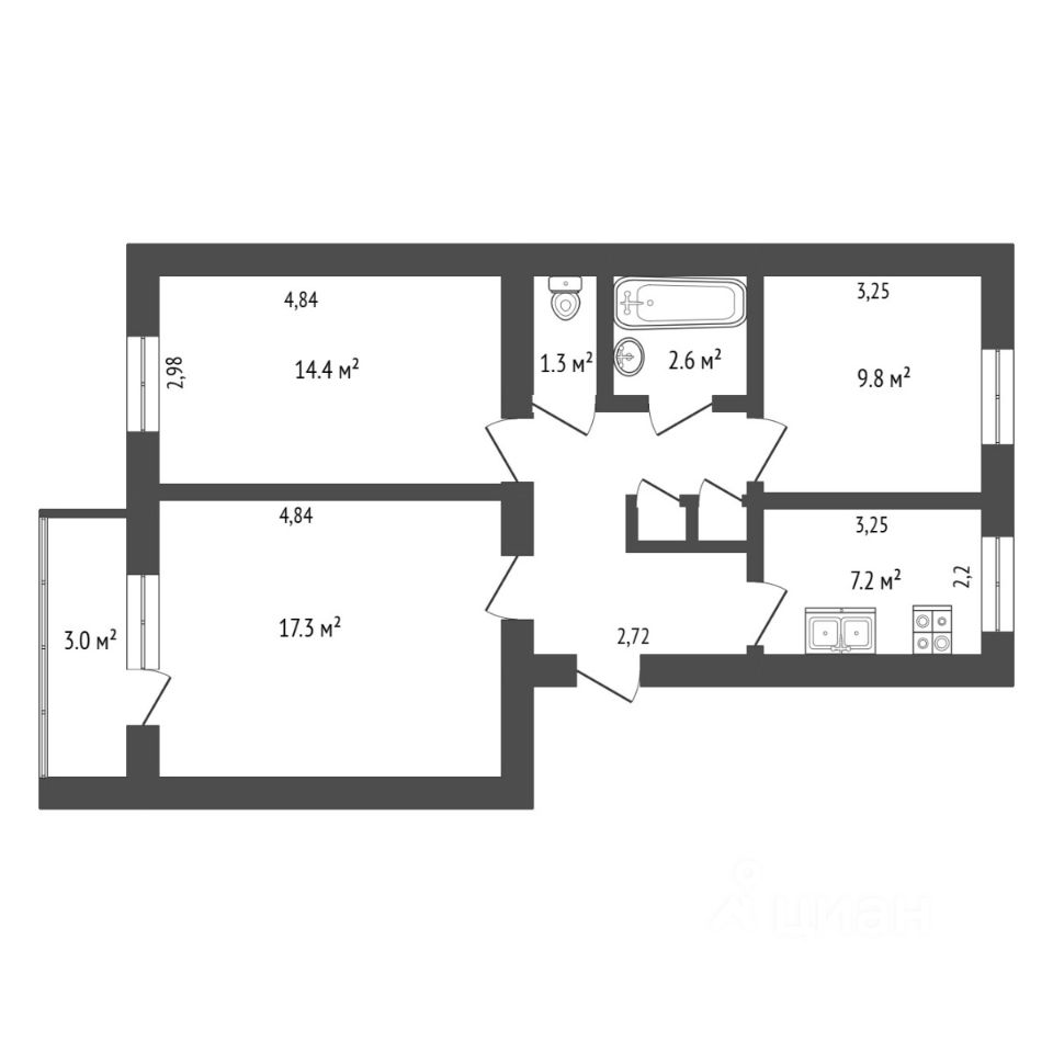 3 к. кв. 65 кв. рядом с ТЦ Колумб, расположенная на 3 этаже 5-этажного дома.