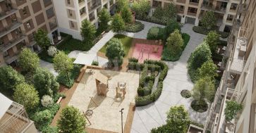 Входы в подъезды мы сделали прозрачными и расположили их на уровне земли. Домофон разместили в тёплом тамбуре, чтобы ни жителям, ни их гостям не пришлось ждать открытия двери на улице.