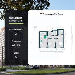 Продается двухкомнатная квартира от застройщика в ЖК "Уездные кварталы" на 4 этаже. Квартира без отделки, новый собственник может сделать ремонт по индивидуальному проекту. Общая площадь: 68.55 кв.м., жилая: 28.52 кв.м., площадь просторной кухни-столовой: 21.39 кв.м. Комнаты изолированные, все окна выходят на одну сторону. В квартире один балкон, два совмещенных санузла. Высота потолков 2.7 м.