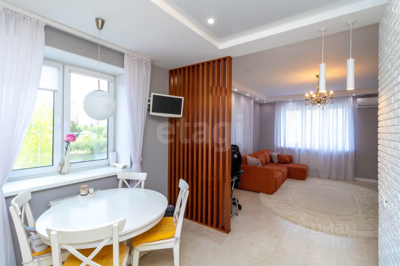 Просторная трехкомнатная квартира на третьем этаже в современном жилом комплексе с закрытой охраняемой территорией. Объект отличается рациональной планировкой: две изолированные спальни, светлая кухня-гостиная площадью 30 м², раздельный санузел и практичная гардеробная комната 6 м². Ключевым преимуществом является выполненный капитальный ремонт с применением качественных материалов: высокие потолки, шумоизоляция межквартирных стен, экологичное пробковое покрытие на полу, выровненные и окрашенные стены. Окна выходят на тихую сторону с видом на благоустроенный пруд, что обеспечивает обилие естественного света и отсутствие уличного шума. В стоимость включена вся современная мебель и бытовая техника.