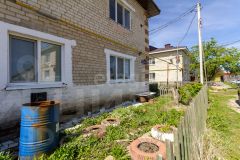 Есть земельный участок около дома где посажены - малина, вишня, клубника, цветы многолетники, так же есть металлический гараж напротив дома.