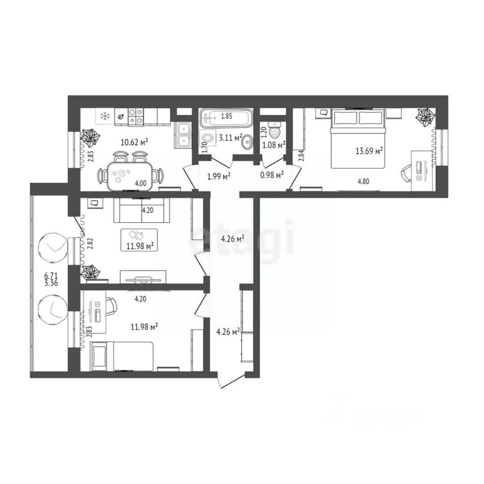 ДОМ СДАН! Жилой комплекс "СПУТНИК". Три полноценные комнаты + кухня. Квартира с хорошим современным ремонтом, мебелью и техникой! Заезжай и живи!