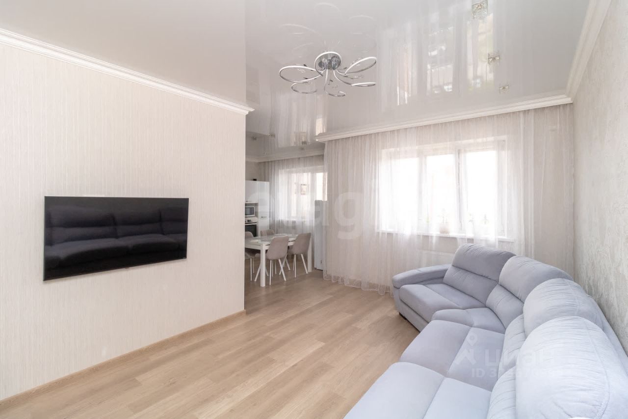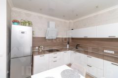 Кухня соединена с залом — это делает пространство более открытым и удобным для жизни. На кухне установлен стильный кухонный гарнитур фирмы Лорена, который не теряет своей актуальности. Ремонт в квартире выполнен в светлых тонах, использовались качественные материалы: полы - ламинат высокого класса прочности, натяжные потолки, обои сдержанных и лаконичных оттенков. Всё в идеальном состоянии — заезжай и живи.