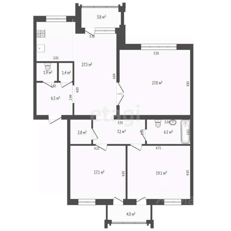 Эта квартира с продуманной планировкой включает в себя уютную кухню-гостиную площадью более 27 квадратных метров, где вы сможете проводить время с близкими и наслаждаться атмосферой домашнего уюта. Также в квартире предусмотрены три отдельные спальни, которые обеспечат вам необходимую приватность и комфорт, а два санузла добавят удобства в повседневной жизни.