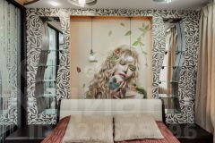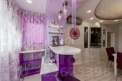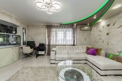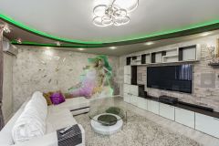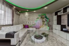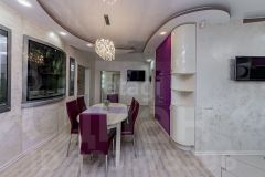 Одним из ярких акцентов квартиры является встроенный в стену аквариум с боковыми пузырьковыми панелями, который станет настоящим украшением вашего интерьера и создаст атмосферу спокойствия и гармонии.
