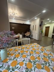 Качественный современный ремонт, преимущественно в светлых тонах, позволяющий заехать без дополнительных вложений. Пространство продуманно до мелочей: квартира оснащена кондиционерами, встроенной мебелью и техникой, оборудована вместительная и удобная гардеробная! Хороший текстиль, рулонные шторы "день/ночь". В одной из лоджий оборудован кабинет, теплый пол. Эта квартира для жизни!