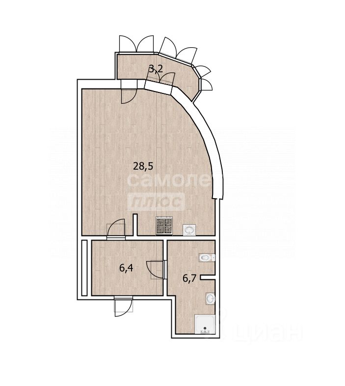 - Планировка и освещение: рациональная свободная планировка, позволяющая организовать жилое пространство индивидуально, большие окна обеспечивают достаточное количество естественного света в течение дня.