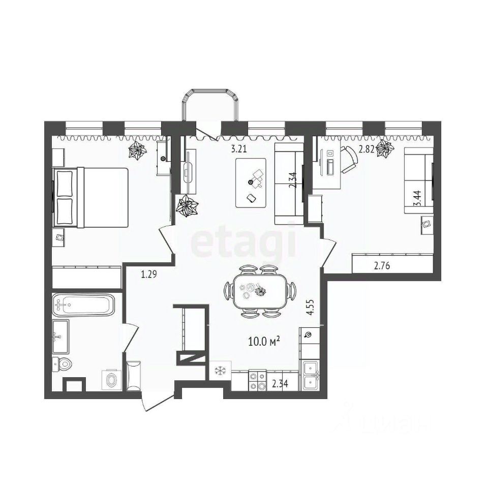 Просторная двухкомнатная квартира в ЖК "Домашний" предлагает комфортное проживание с продуманной планировкой и современными инженерными решениями. Объект расположен на среднем этаже, что обеспечивает оптимальный баланс между доступностью и приватностью. Квартира выполнена с качественным ремонтом, готовым к заселению. Основное пространство объединяет кухню и гостиную, создавая удобную зону для отдыха и приема гостей. Из кухни-гостиной есть выход на закрытую лоджию, расширяющую полезную площадь и позволяющую наслаждаться свежим воздухом в любую погоду. Прихожая функционально организована — предусмотрена ниша под встроенный шкаф, что оптимизирует хранение вещей без потери свободного пространства.