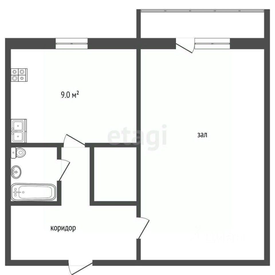 Общая площадь: - 34.1 м.кв, коридор - 4.6 м.кв., санузел - 4.6 м.кв., Зал - 16.4 м.кв., кухня - 8.7 м.кв., лоджия - 4.6 м.кв.